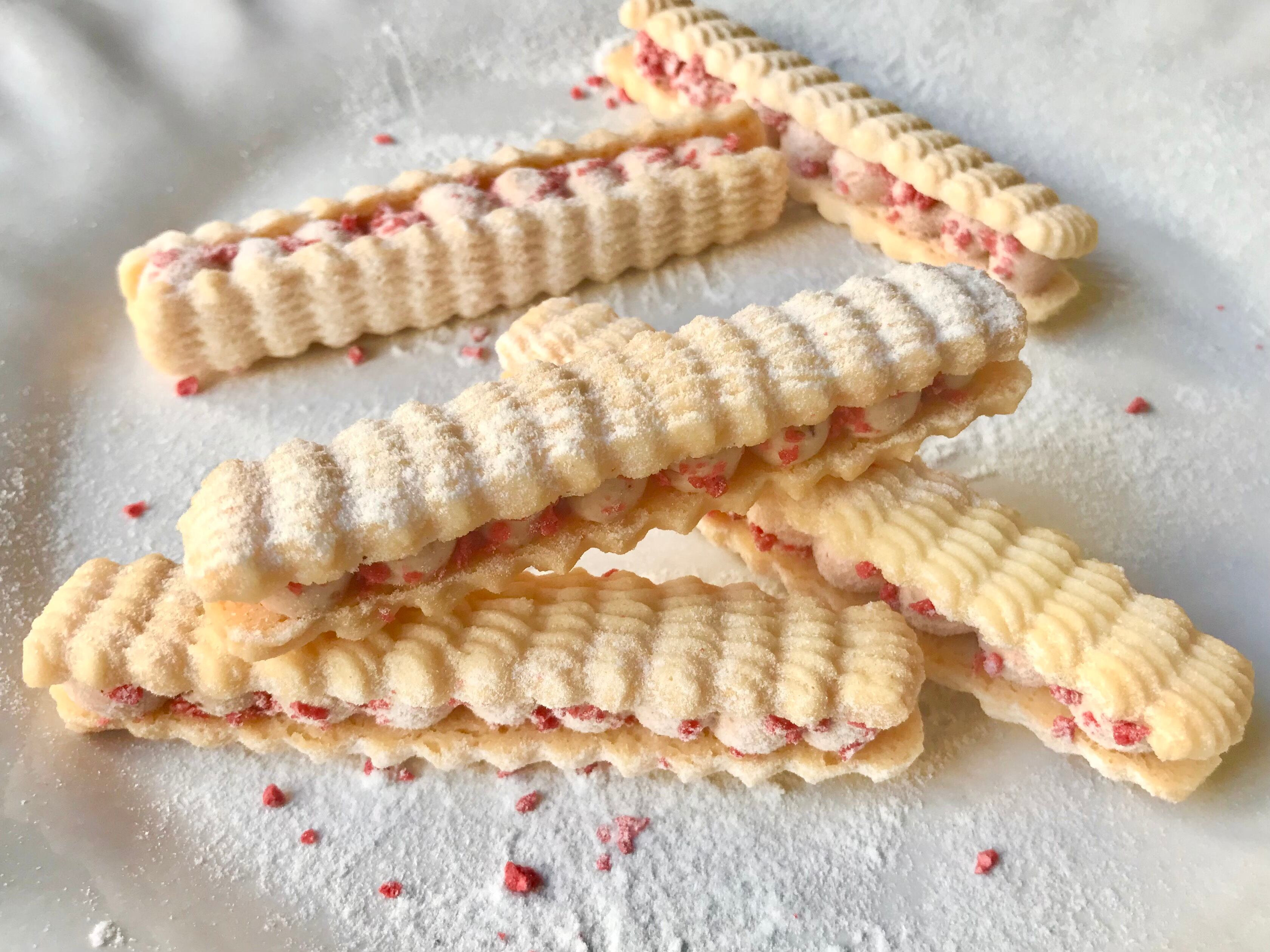 さっくりとした食感の生地といちごのほのかな酸味と優しい甘さのバタークリームは、
